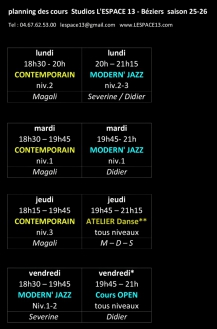 choisissez vos cours d'essai et notez-les sur le formulaire plus bas :